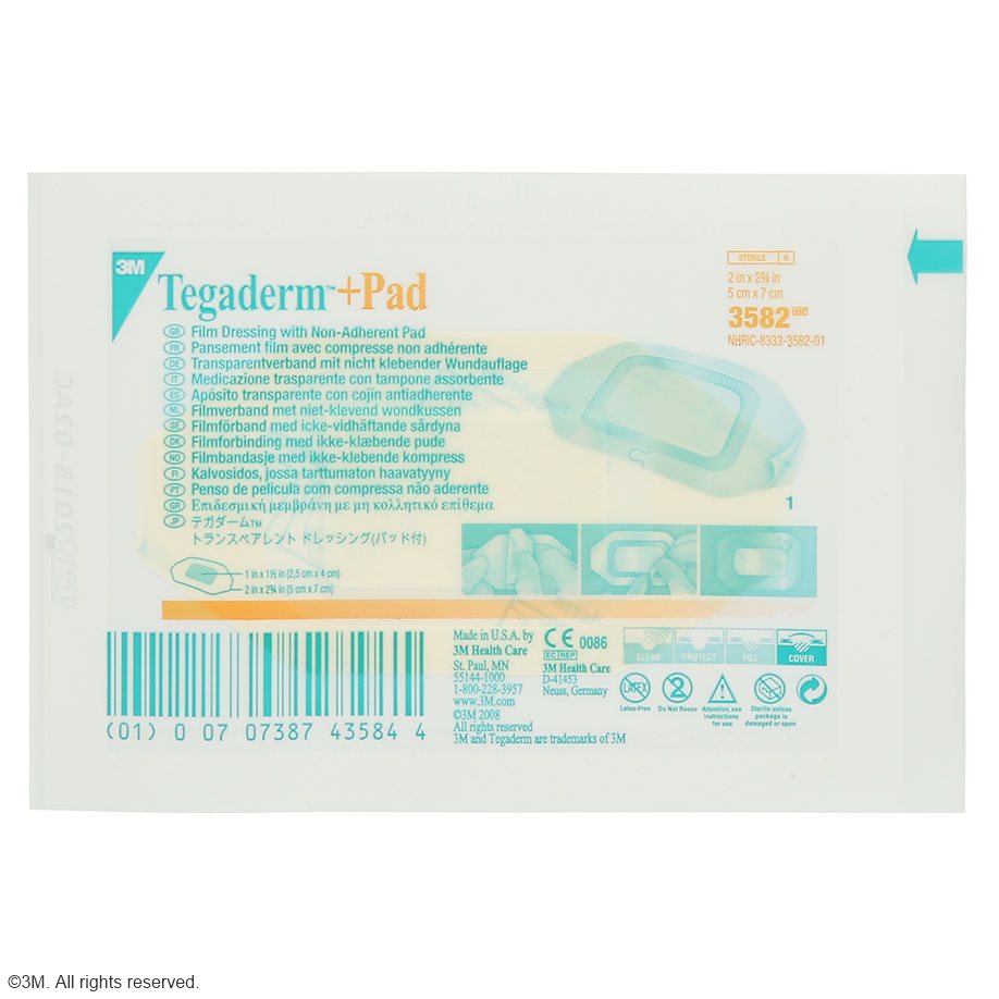Tegaderm™ + Pad Transparentverband mit absorptionsfähiger Wundauflage ist ein vielseitig verwendbarer, steriler Fertigverband mit den Vorteilen eines Transparentverbandes: wasserdicht, keimdicht, abwischbar (auch mit alkoholischen Desinfektionsmitteln) und doch atmungsaktiv.