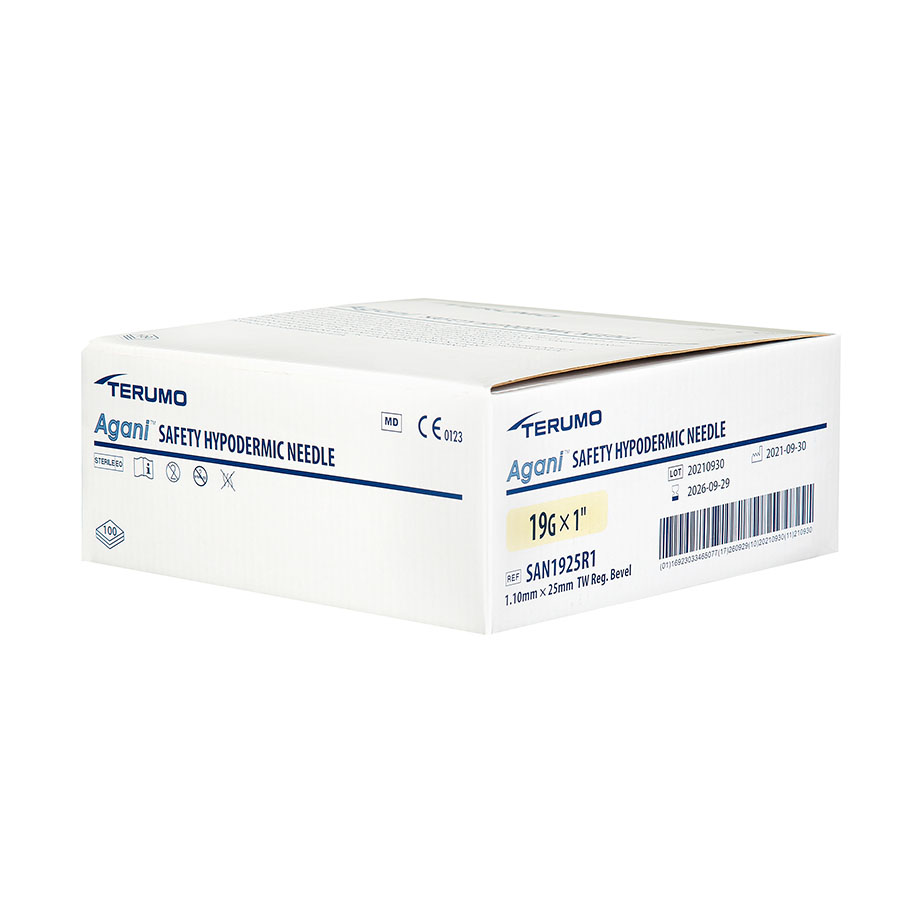 Agani Sicherheits-Injektionskanülen 19 G x 1'' (100 Stck.) 1,10 x 25 mm, beige UK = 8 Pack