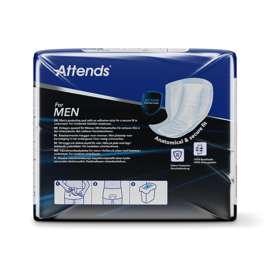 Attends® For Men 4 Protective Pad sind anatomisch geformte Einlagen speziell für Männer bei mittlerer Harninkontinenz.