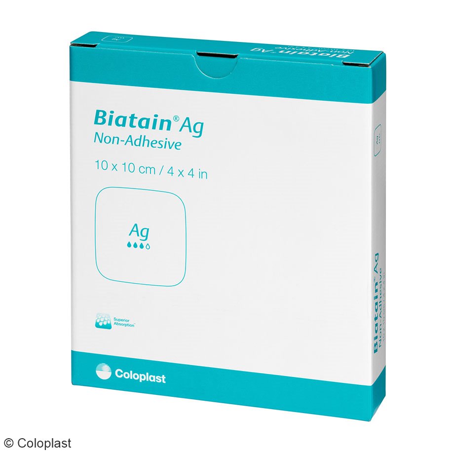 Der Biatain Ag Schaumverband ist weich, hoch absorbierend und auch in Kombination mit Kompressionstherapie einsetzbar. Biatain Ag wirkt nachweisbar antibakteriell gegen die häufigsten Oberflächen- und Gewebebakterien in chronischen Wunden, Candida albicans sowie VRE und MRSA. Das Silber ist homogen im Biatain Ag Schaumverband verteilt. Bei Kontakt mit Wundexsudat wird bis zu sieben Tagen kontinuierlich Silber freigesetzt. Der nicht-haftende Biatain Ag ist in erster Linie für exsudierende Wunden mit stark vorgeschädigter Umgebungshaut angezeigt und zeichnet sich zusätzlich durch abgeflachte Ränder aus, wodurch das Auftreten von Druckstellen deutlich verringert wird. Um den nicht-haftenden Biatain Ag Schaumverband zu fixieren, wird ein Sekundärverband benötigt.