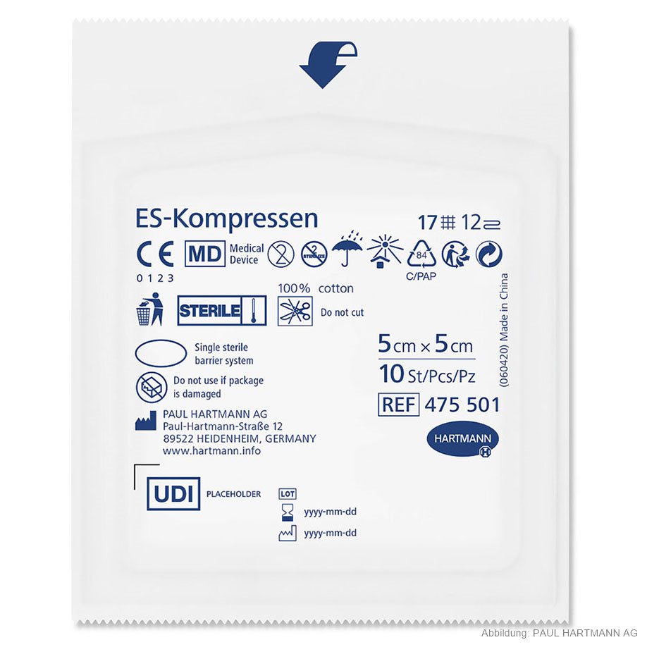 ES-Kompressen steril 12-fach 5 x 5 cm (10 x 10 Stck.) UK = 9 Pack