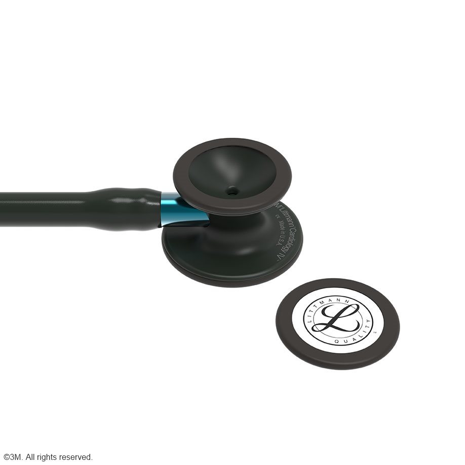 Littmann Cardiology IV Diagnostic Stethoskop Black Edition, Schlauch schwarz, mit blauem Schlauchanschluss