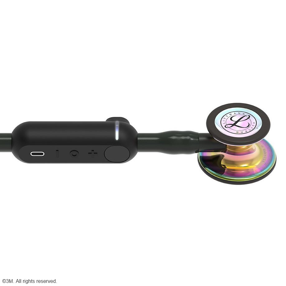 Littmann Elektronisches Stethoskop Modell CORE, High Polish Regenbogen Edition, Schlauch, Schlauchanschluss und Ohrbügel in schwarz