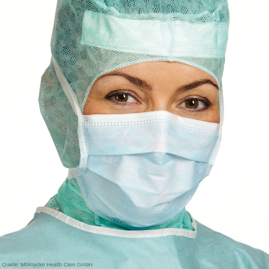OP-Maske mit extra langen Bindebändern und einer bakteriellen Filtrationseffizienz von > 98 %. Geringer Atemwiderstand garantiert hohen Tragekomfort. Geeignet für Eingriffe mit geringem Flüssigkeitsaufkommen. Produktklassifizierung gemäß EU-Nrom EN 14683: Typ 2