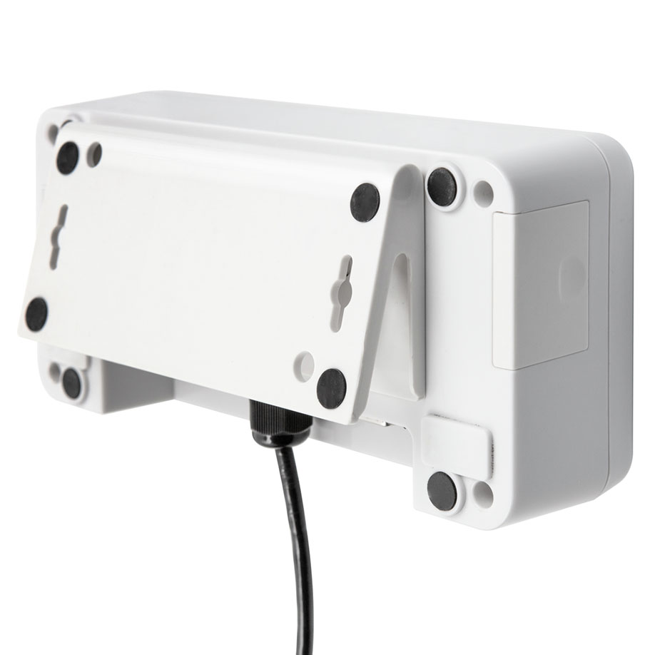 - Auswertegerät vielseitig positionierbar, z. B. freistehend oder an die Wand geschraubt. Wandhalterung zur Montage des Auswertegerätes serienmäßig