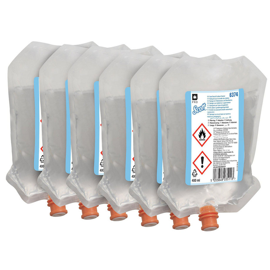 SCOTT Toilettensitz- und Oberflächenreiniger Nachfüllbeutel, transparent (6 x 400 ml)