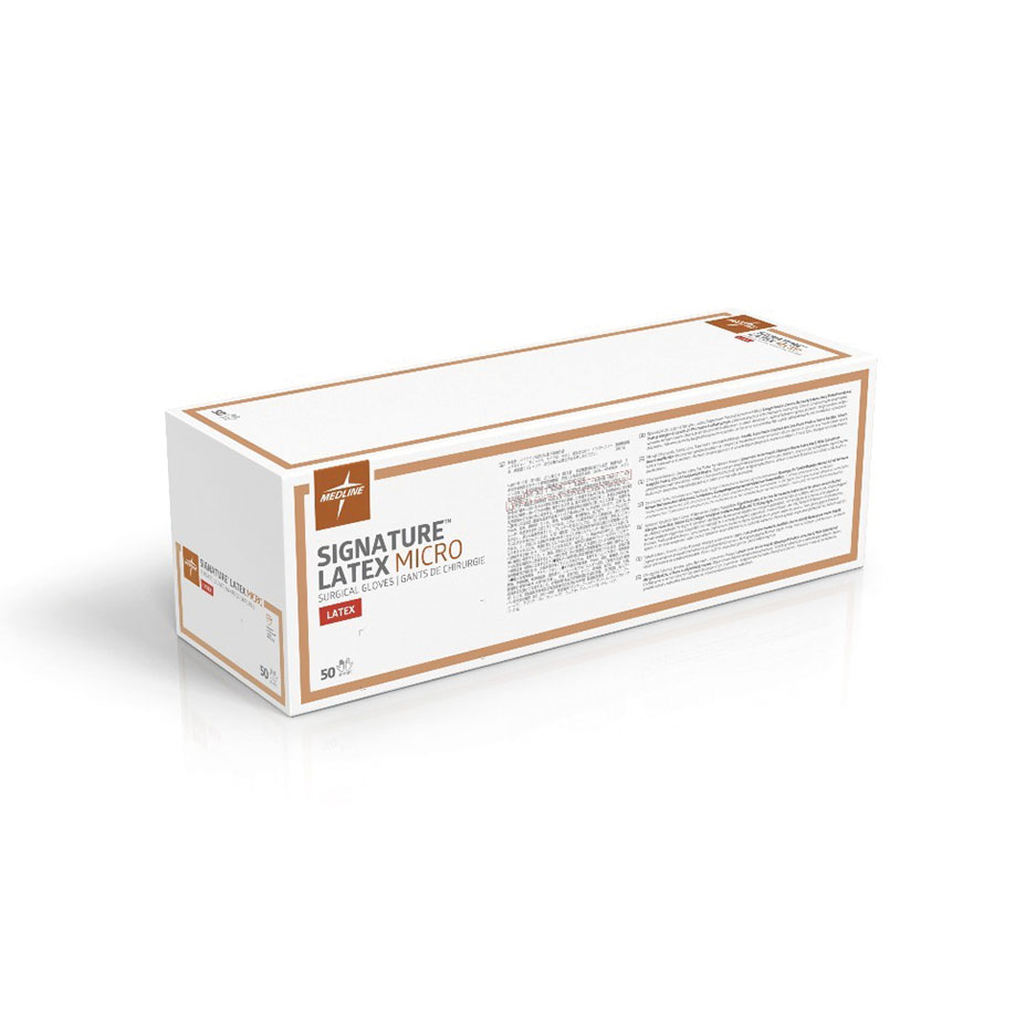 Die sterilen puderfreien Signature Latex Micro OP-Handschuhe eignen sich für Eingriffe, die ein extrem hohes Tastempfinden erfordern. Hierzu zählen allgemeinchirurgische sowie neurologische, vaskuläre, plastische und augenchirurgische Eingriffe. Die mikrofeine Stärke von 0,18 mm an der Handfläche und 0,17 mm an der Stulpe erleichtert diese Aufgabe. Diese OP-Handschuh ermöglichen dank einer leicht gleitenden Polymerbeschichtung außerdem das mühelose Anziehen bei feuchten und trockenen Händen. Die puderfreie Polymerbeschichtung im Inneren der Handschuhe ist molekular gebunden, um eine Delamination oder ein Abblättern zu verhindern. Die rutschfesten Handschuhe mit E-Z-Glide-Beschichtung sind dank ihres dünnen Latexmaterials als Außenhandschuhe bei doppelter Behandschuhung geeignet.