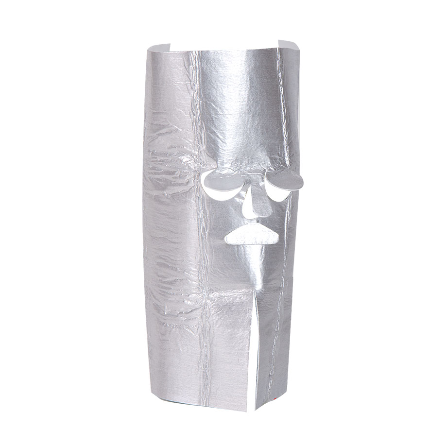 Gebrauchsfertige aluderm®-Gesichtsmaske zur Abdeckung großflächiger Verletzungen im Gesicht. Vorgestanzte Bereiche für Augen, Mund und Nase, das Gesicht ist komplett abgedeckt, die Atemöffnungen bleiben frei. Einzeln steril verpackt.