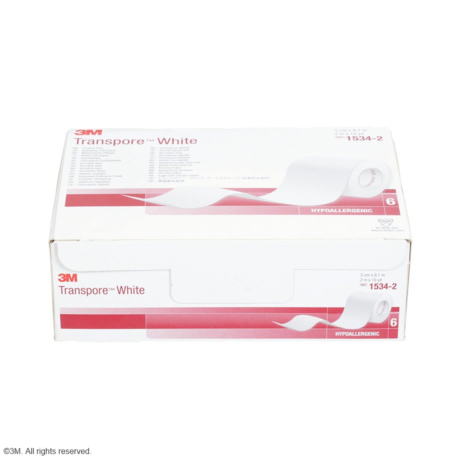 3M™ Transpore™ White is a universally applicable, skin-friendly plaster with excellent crosswise and lengthwise tearability. Transpore White is hypoallergenic, supple, easy to tear lengthwise and crosswise, porous and extremely breathable. It is the perfect universal plaster. 3M Transpore White consists of a rayon/polyester blend, the adhesive is a skin-friendly polyacrylate.