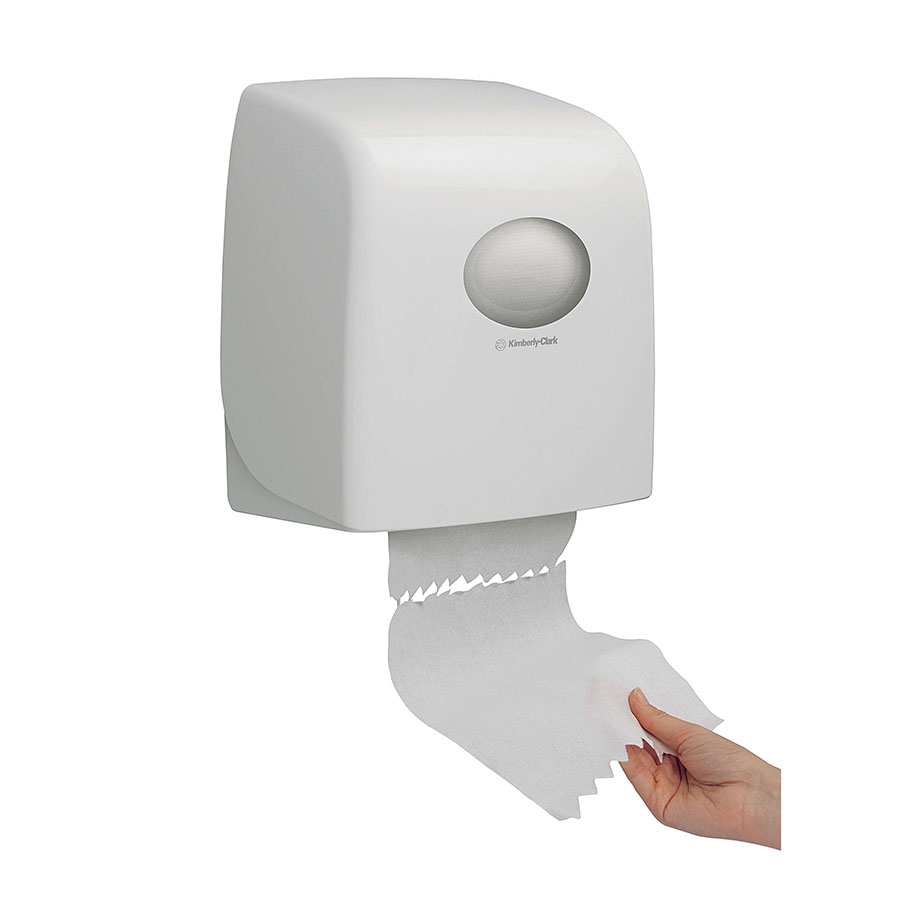 made of tearproof plastic, with controlled removal mechanism, for towels with 25 cm length, the rest roll funktion provides an continous supply and reduces waste, sleek design, high capacity, for the following Kimberly products: 6657, 6658, 6697, 6698, 6787, 79171, 79172, 79173, 79174