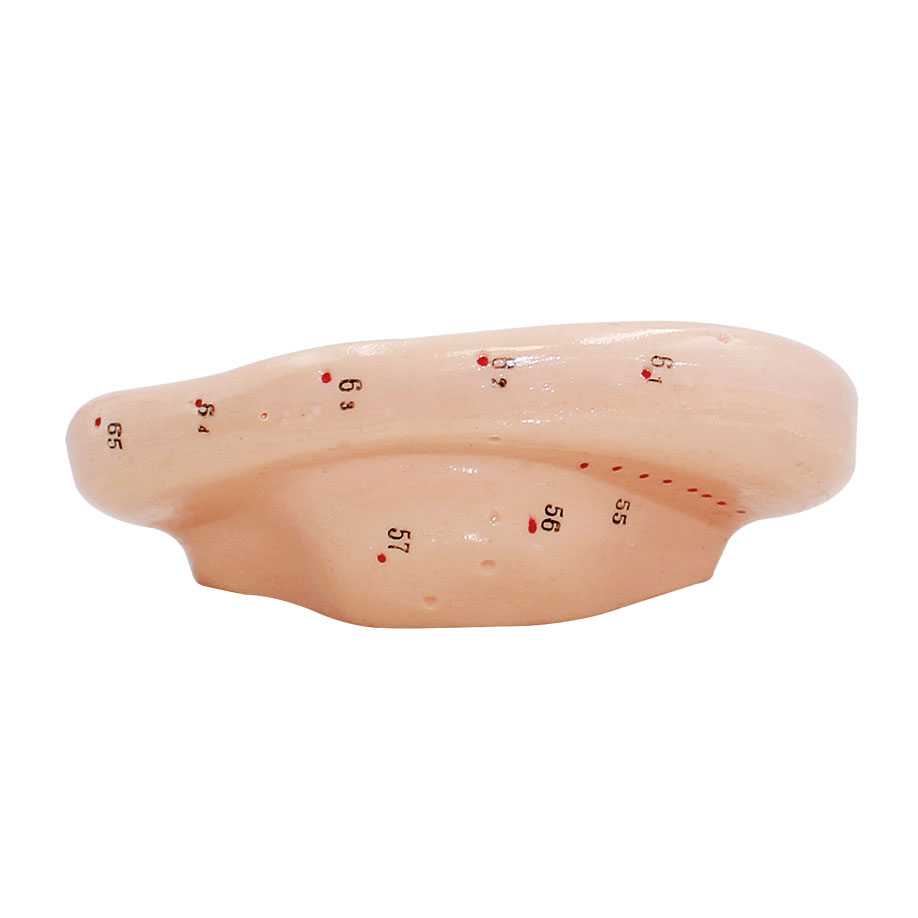 This human model of an ear is made of a skin similar plastic surface. The individual acupuncture points and meridians are indicated in multiple colours. The model is ideal to practice and visualising of the individual therapy forms. Along the way, new patients will be advised by this model, that acupuncture will be offered as a therapy form at doctor's practices.