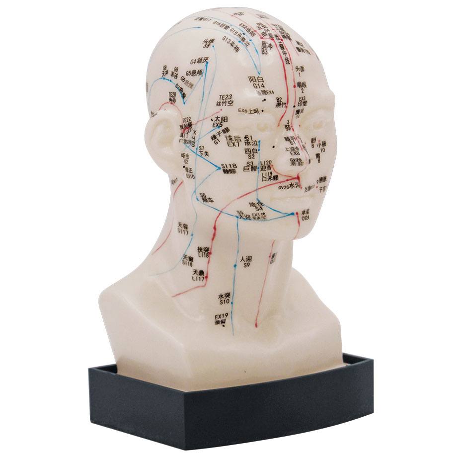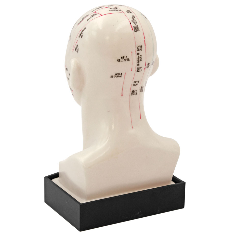 This acupuncture model of a human head is made of a skin similar plastic surface. The individual acupuncture points and meridians are indicated in multiple colours. The model is ideal to practice and visualising of the individual therapy forms. Along the way, new patients will be advised by this model, that acupuncture will be offered as a therapy form at doctor's practices.