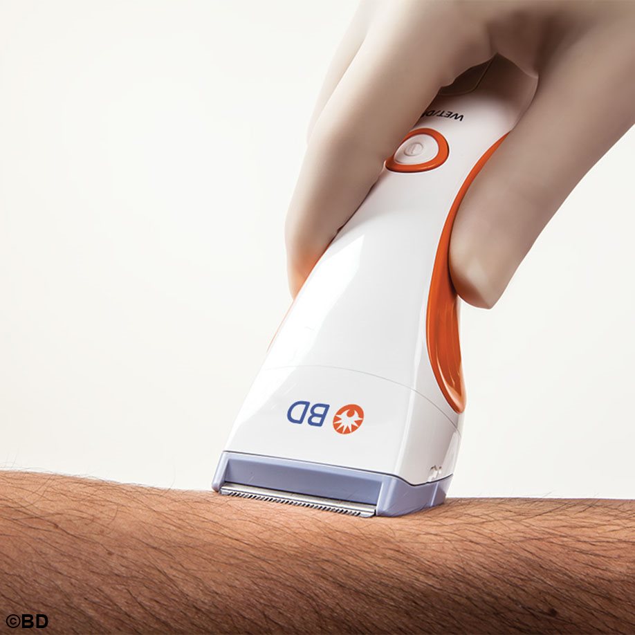 The BD Surgical Clippers remove hair in a single step, while reducing the risk of skin irritation and infection compared to traditional razors. Their versatility, hygiene and performance mean they can be used in any area.
