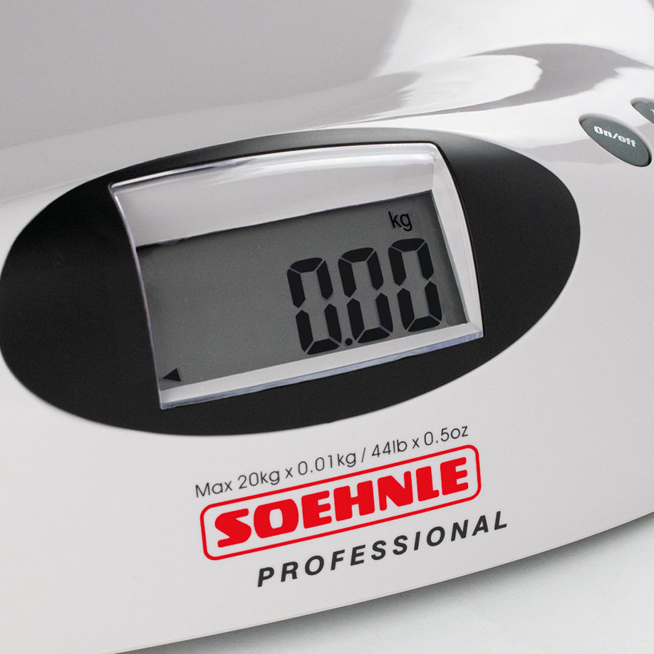 Handy and non-tilting baby scale with a easy to clean plastic housing.