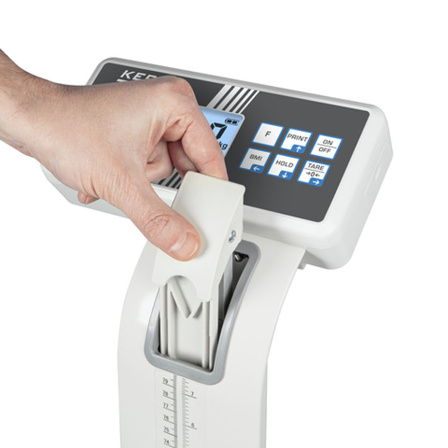 - the MPN-HM model has an extendable height measuring rod elegantly integrated in the stand, with a plastic head stop and a measuring range of 89 - 205 cm. Patients with a body height of less than 80 cm can be measured directly with the height gauge attached to the stand.
