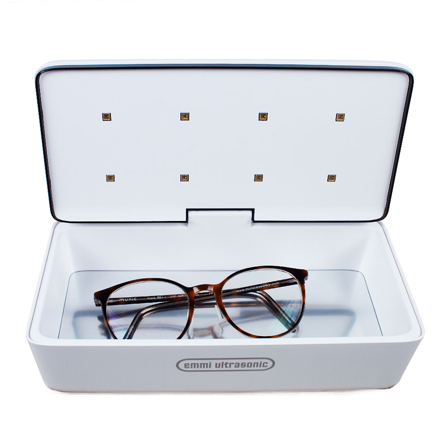 In daily life, it cannot be ruled out that one comes into contact with bacteria and germs through personal contact or by simply touching everyday objects. emmi®-Steri is a storage box with sterilisation function for beauty and nail products as well as everyday objects. Kills up to 99.99% of bacteria and germs in 3 minutes: The UVC light is able to destroy the bacteria DNA and kills all kinds of germs. The emmi®-Steri UVC LED combines 8 UV and LED lamps which have a dual optical wavelength of 395 nm + 280 nm by using a double light source and a double energy function. A reflective glass is mounted on the bottom of the box, which reflects the UV light when the unit is in use, so that it sterilises the bacteria from all angles. There is a voice announcement for all processes, for example: "Sterilised" or "Sterilisation completed". When the steriliser is switched on the white light flashes once. When the machine is in standby mode the white light is shown continuously without flashing. The white scrolling text switches on automatically when the unit is sterilising. Safety sensor and automatic power off: By means of a built-in gravity sensor, the unit switches off immediately if the lid is opened during sterilisation, so that the skin is not exposed to UVC light. In addition, the unit switches off automatically after 15 hours in standby mode thanks to a built-in power saving detection function.