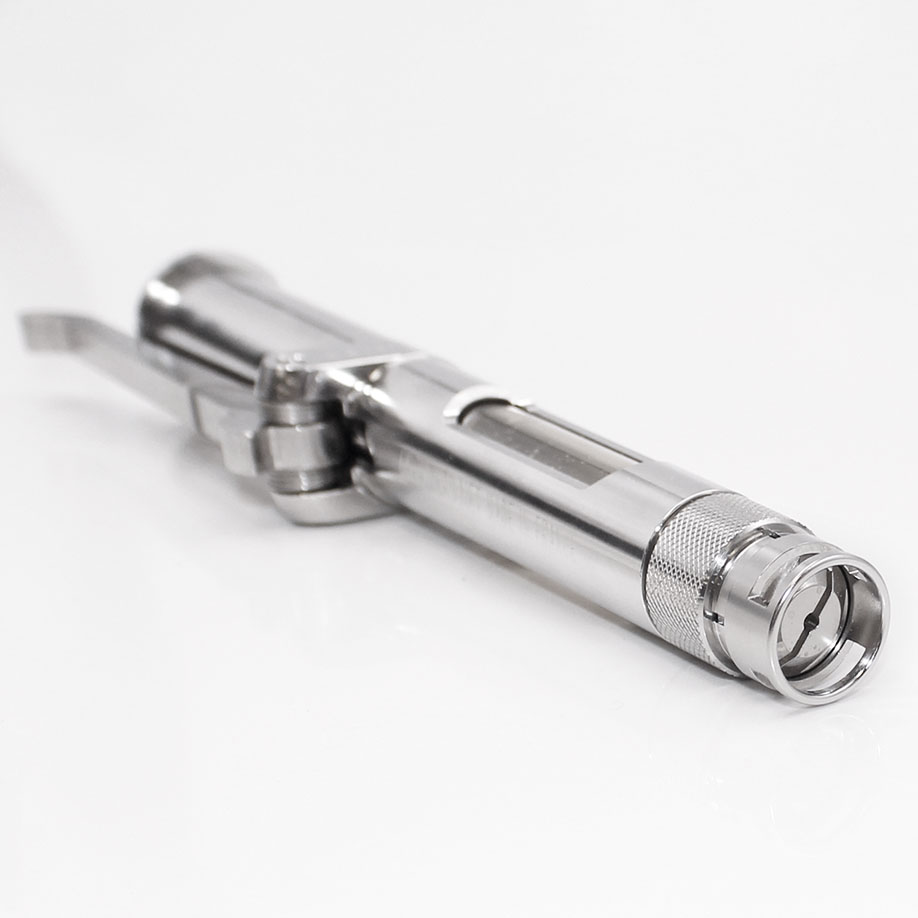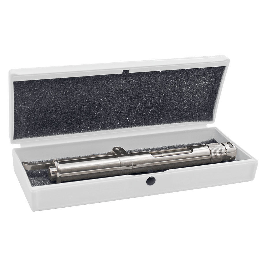 The Dermo-Jet is exclusively for use by members of the medical profession, for the purposes of local ananesthesia, corticosteroid injection, treatment of hypertrophic and keloid scars and treatment of warts. The Dermo-Jet is fitted with a single-dose head set at 0.1 ml and delivers about 40 doses. The reservoir is made of transparent polysulfone, which contains the liquid to be injectet. It's capacity is 4 ml (40 doses of 0.1 ml). To laod the injector unscrew the injector head and remove it with the reservoir. The Dermo-Jet should not be used other than for the indications stated, nor, generally, in any area likely to suffer lesoins following injection under pressure, particularly the eye ball and blood vessels.