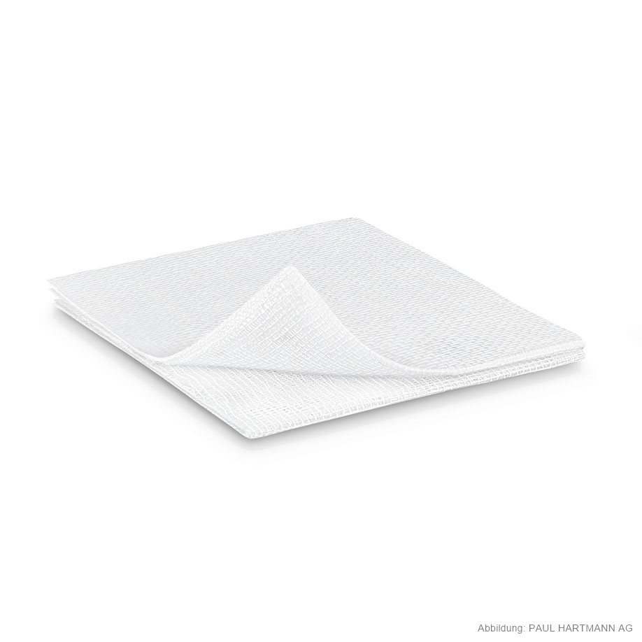 Made of absorbent cotton gauze according to EN 14079, 17 threads, with cut edges folded in (= ES), in sterilizable paper bags