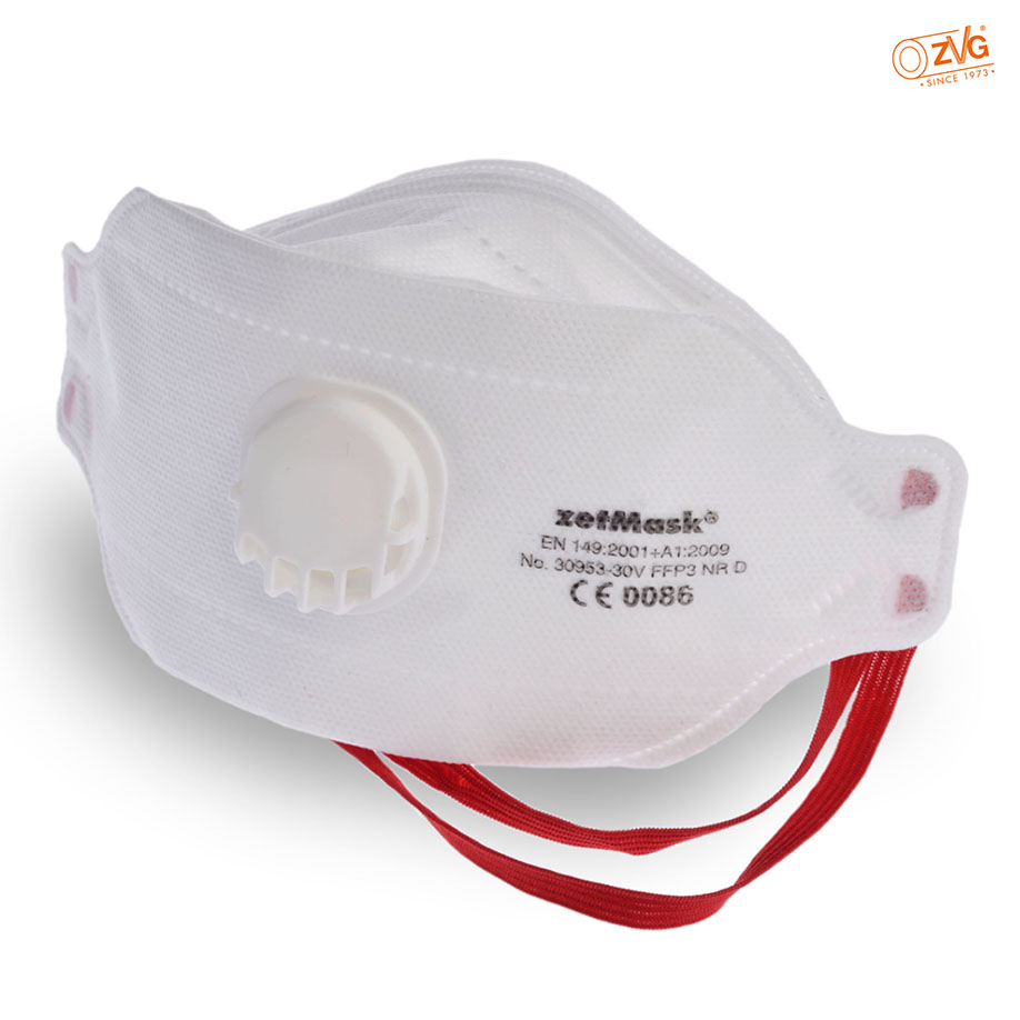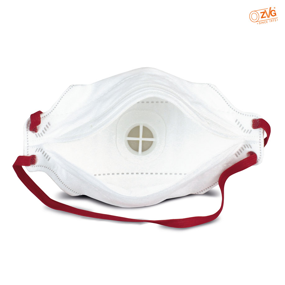 Fine dust filter mask for protection against solid and liquid particles of health, toxic substances, flat folded, with a solid, elasticall around banding, approved to EN 149:2001+A1:2009 standard, latexfree, single hygienically packed.