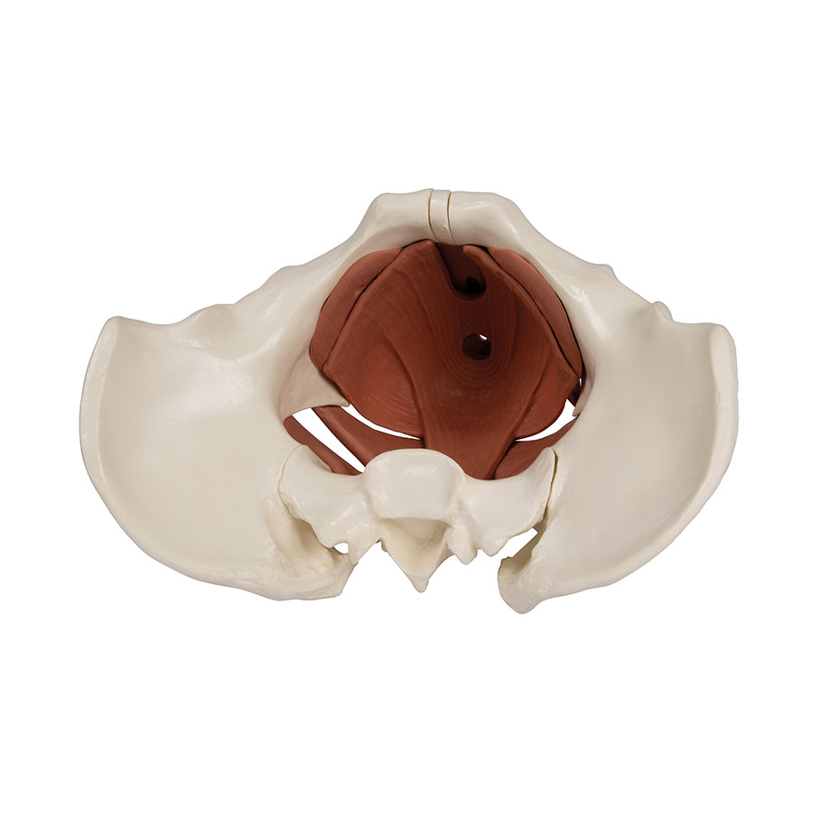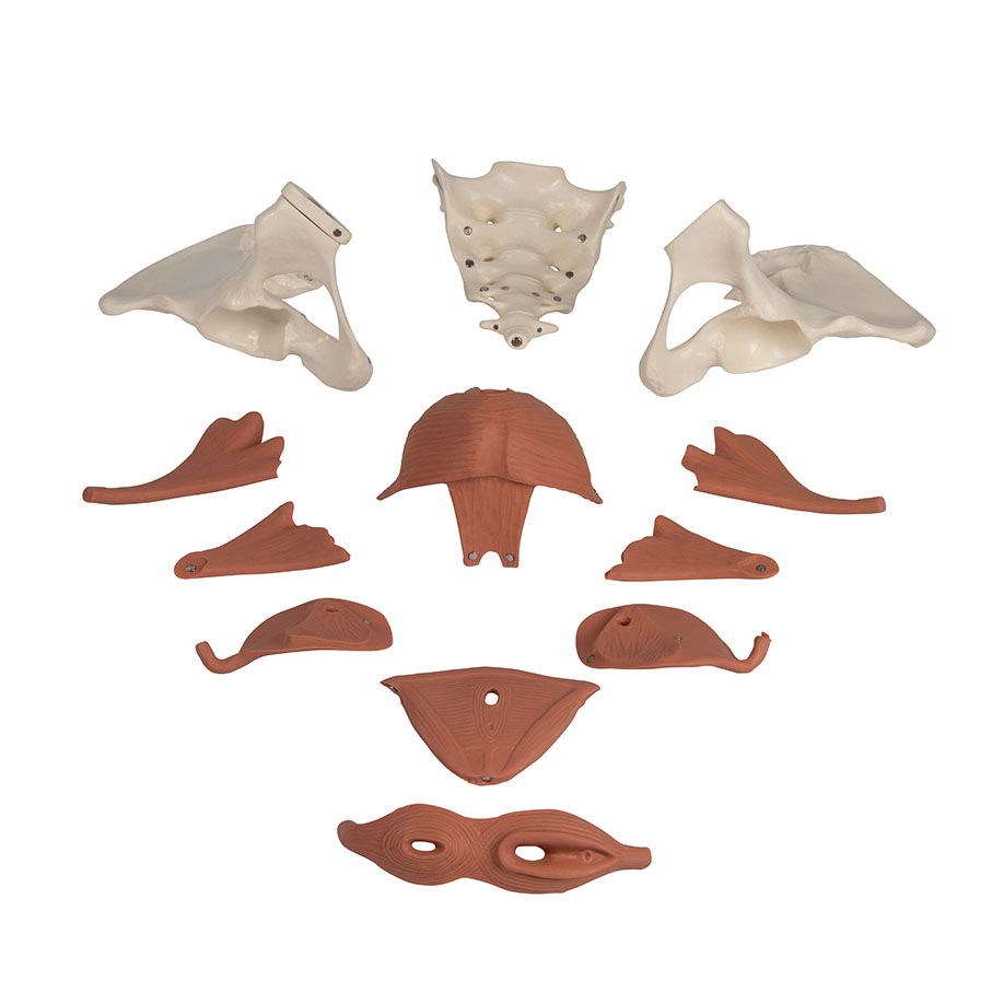 Together with the two halves of the pelvis and the sacrum, the model consists of a total of 12 parts. The model is held together by magnets so that individual parts can be easily removed to demonstrate the individual layers. This model is ideal for courses in pelvic floor exercises, birth preparation, midwife training or simply for studying the pelvic floor muscles.