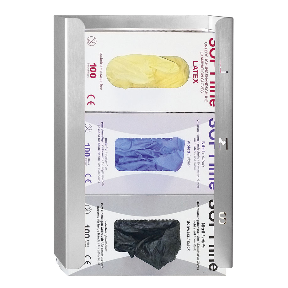 for ready-to-hand storage of examination gloves, punched sizes S/M/L, incl. wall fixing material, dimensions: 25.8 x 39 x 9.6 cm