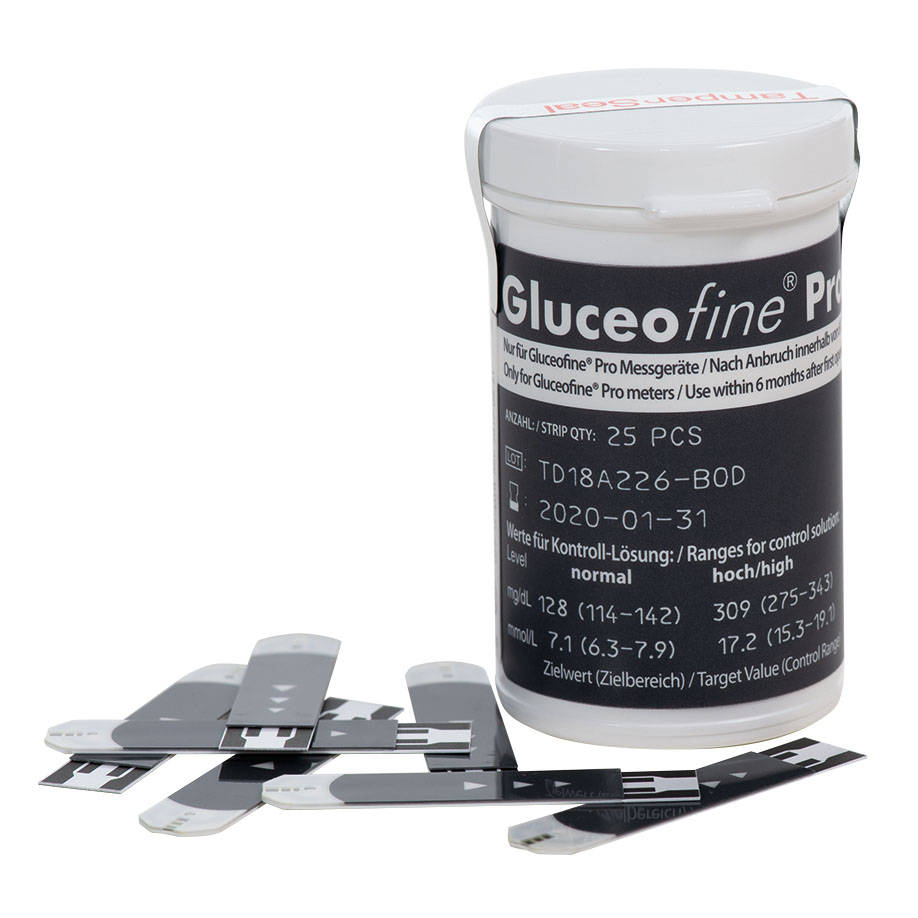 With innovative sensor technology, the test strips are easy to handle due to their size and stability, especially for elderly people, only for use with Gluceofine® Pro meters