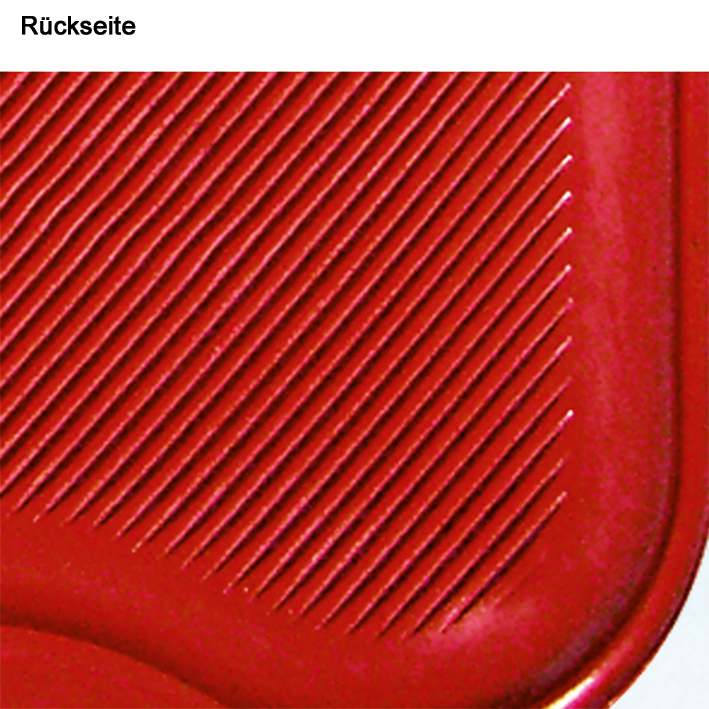 made of natural rubber, 1.6 liters, colour: red The hot water bottle may cause burns, ideally use a cloth cover.