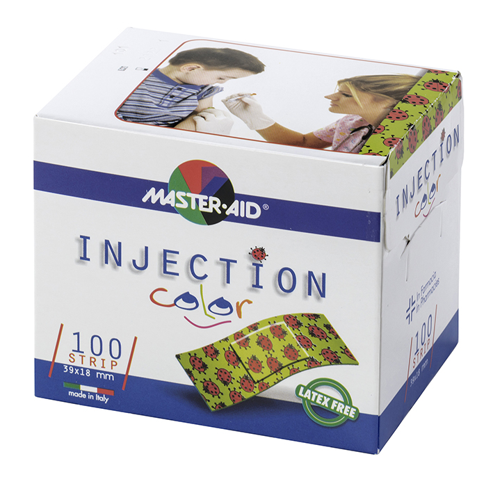 All-round adhesive injection plaster on the roll. Air-permeable strip of soft cotton nonwoven fabric with hypoallergenic hot-melt adhesive for wound care and protection after injections. Latex-free.