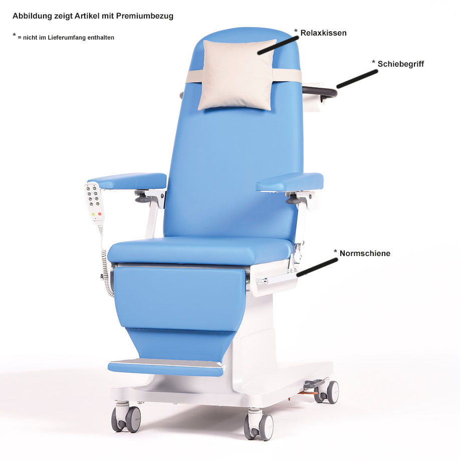 Infusion and Transfusion table Multiline next IT, with 4 motors, incl. height adjustment, fold-out footrest, cover compact anthracite