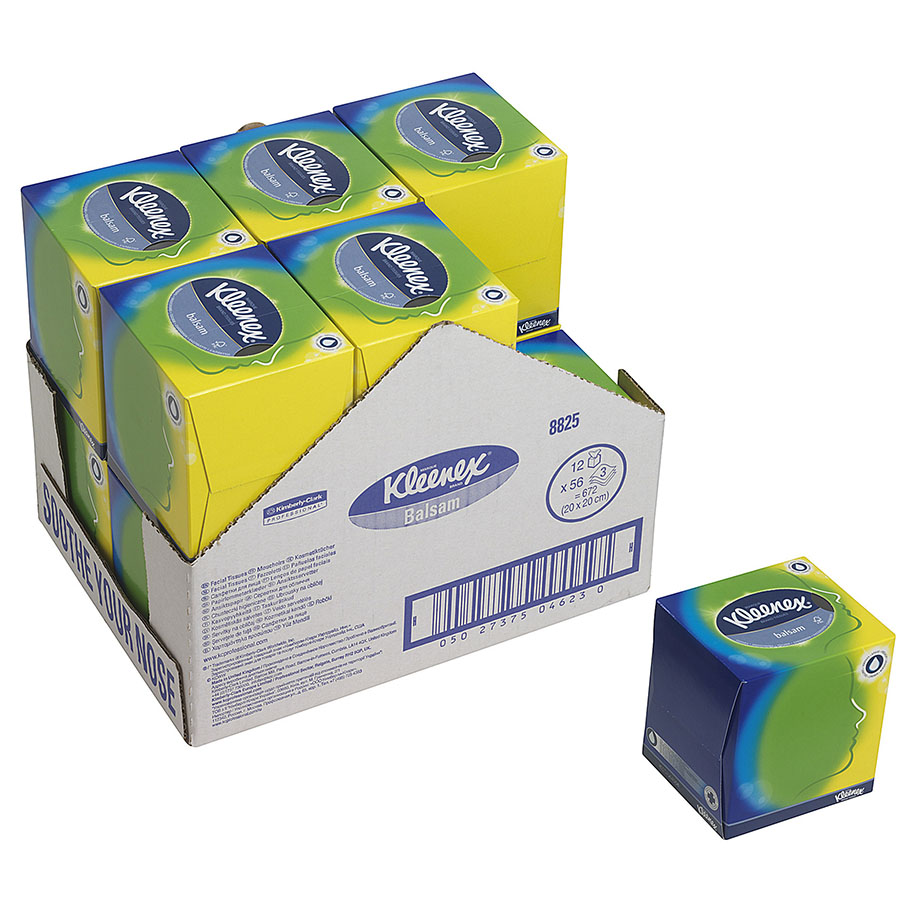 KLEENEX Balsam cosmetic tissues, white, 3-ply, 20 x 20 cm (12 x 56 sheets) (in cube box)
