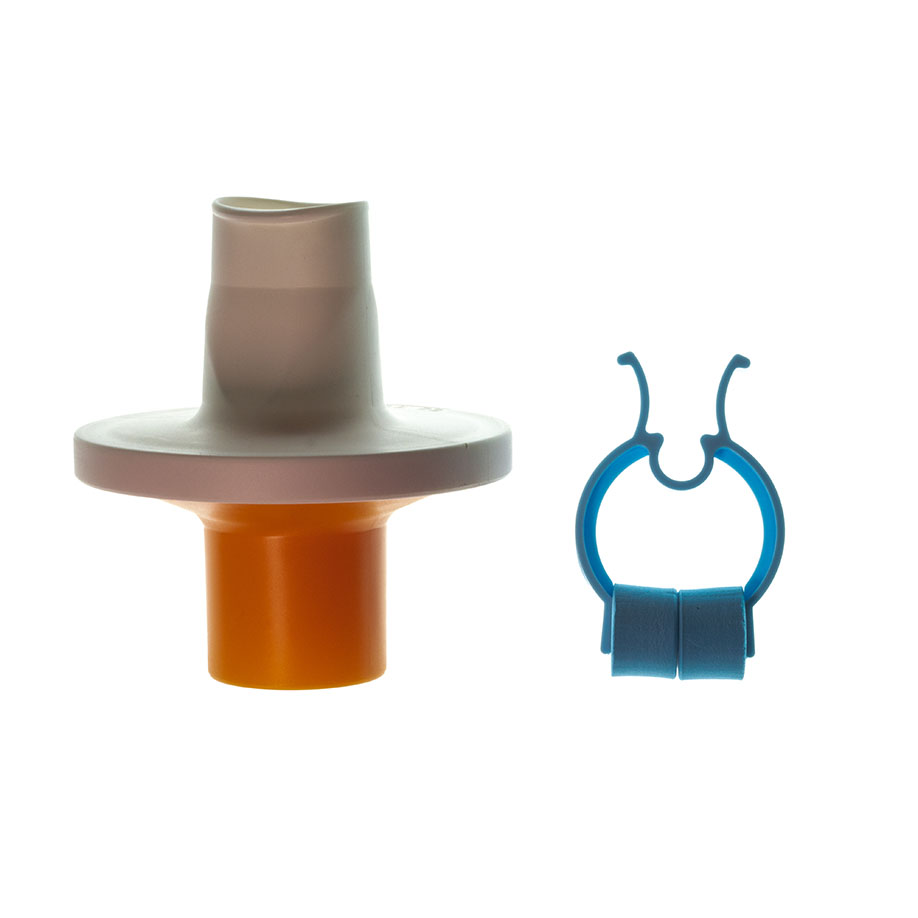 MADA 83 Orange bacteria and viral filters with blue foam nose clip (MEG 855518) for spirometry offer a high level of protection against bacteria and viruses, including COVID-19. The filters are made of high-quality materials and have been tested for 99.999% filtration efficiency. They are suitable for various spirometers and are intended for single use. The 3D-shaped mouthpiece ensures a good seal and reduces resistance, ensuring accurate measurement results. The MADA disposable nose clip with foam pad offers the perfect balance between comfort and hygiene. The soft foam ensures a comfortable fit, while the disposable design ensures optimal hygiene.