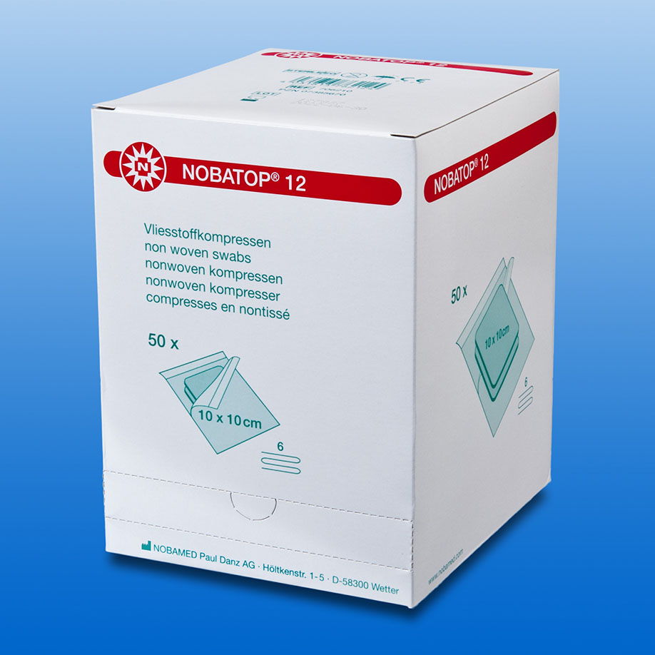 Product information "NOBATOP 12 non-woven compresses, 6-ply, 10 x 10 cm, sterile (50x2 pcs.)"