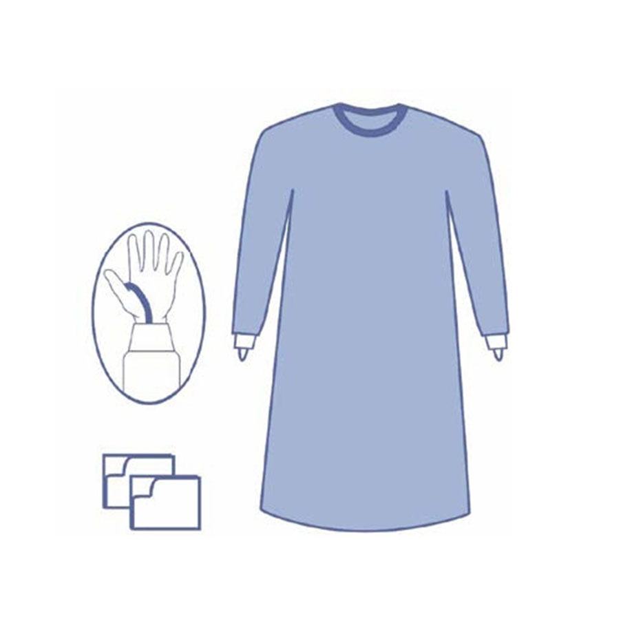 OPS Essential Standard surgical gowns blue, thump loops, XL, 140cm (32 sets) sterile