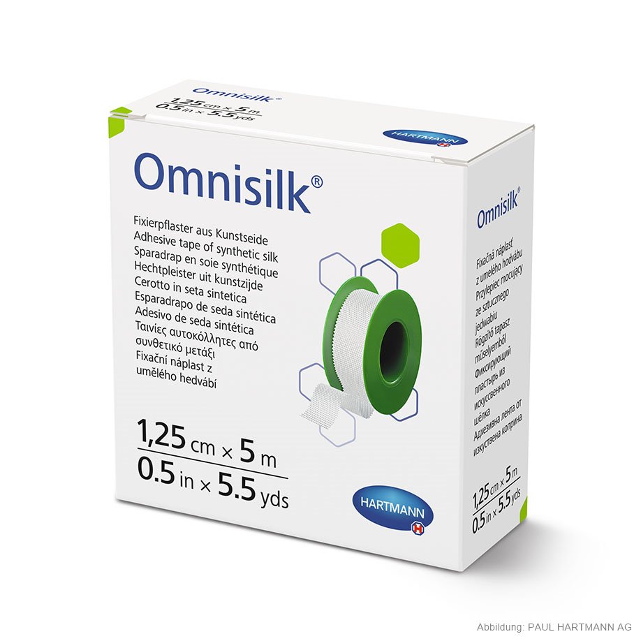 Omnisilk 5 m x 1.25 cm fixation tape in plastic clip cs. = 300 pcs.