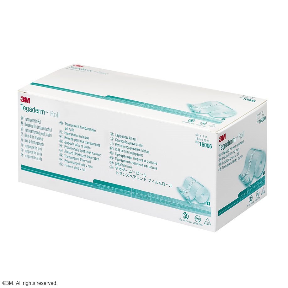 This non-sterile roll version of Tegaderm™ Transparent Film Dressing provides a bacterial and viral barrier while fixating medical devices and primary dressings to the skin.