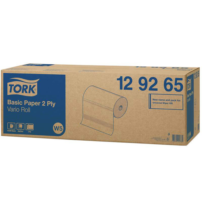 bright white paper wipe-small roll, 2-ply, perforated, dimensions of wipe 23 x 28 cm, high quality, for Tork Vario Box W5, 10 rolls with each 56 meters (2000 wipes) in carton