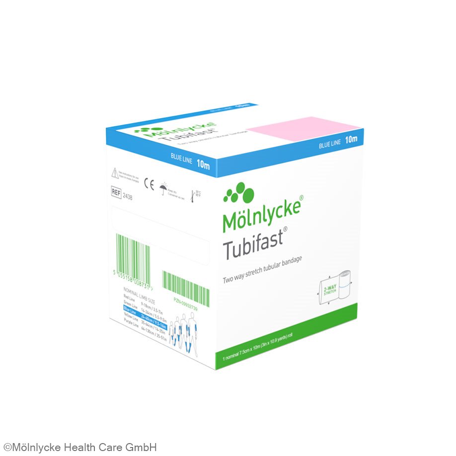 Tubifast® 2-Way Stretch is an elastic tubular bandage that can be stretched both lengthwise and crosswise and is suitable for covering and securing primary bandages, such as Mepilex®, Mepilex® Lite, Mextra® Superabsorbent or other medical products.