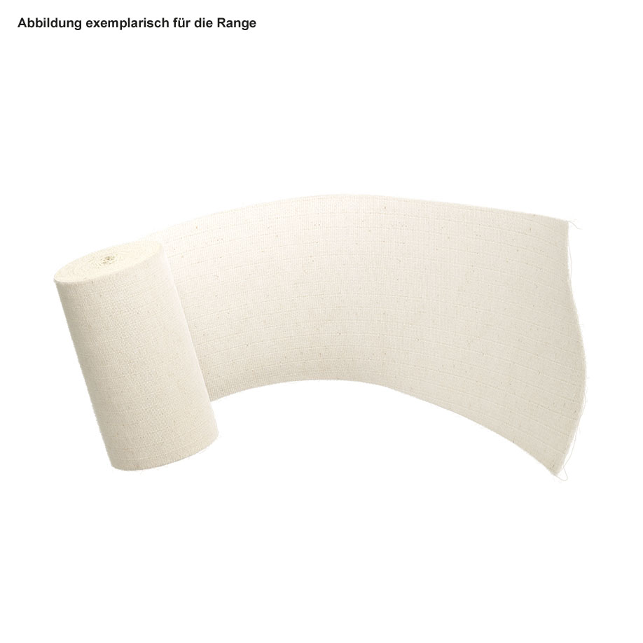 Universalbinde mit kurzem Zug, weich, hautfreundlich, waschbar, webkantig, längselastisch, 66% Baumwolle, 33% Polyamid, 1% Polyurethan Dehnbarkeit ca. 85%