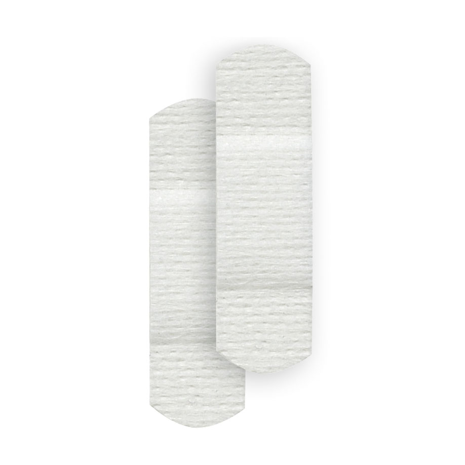 zur Abdeckung der Einstichstelle, zur äußeren Anwendung, anpassungsfähig, mit abgerundeten Ecken, absorbierende, nicht haftende Wundauflage aus Viskose und Polyester, luft- und wasserdampfdurchlässig