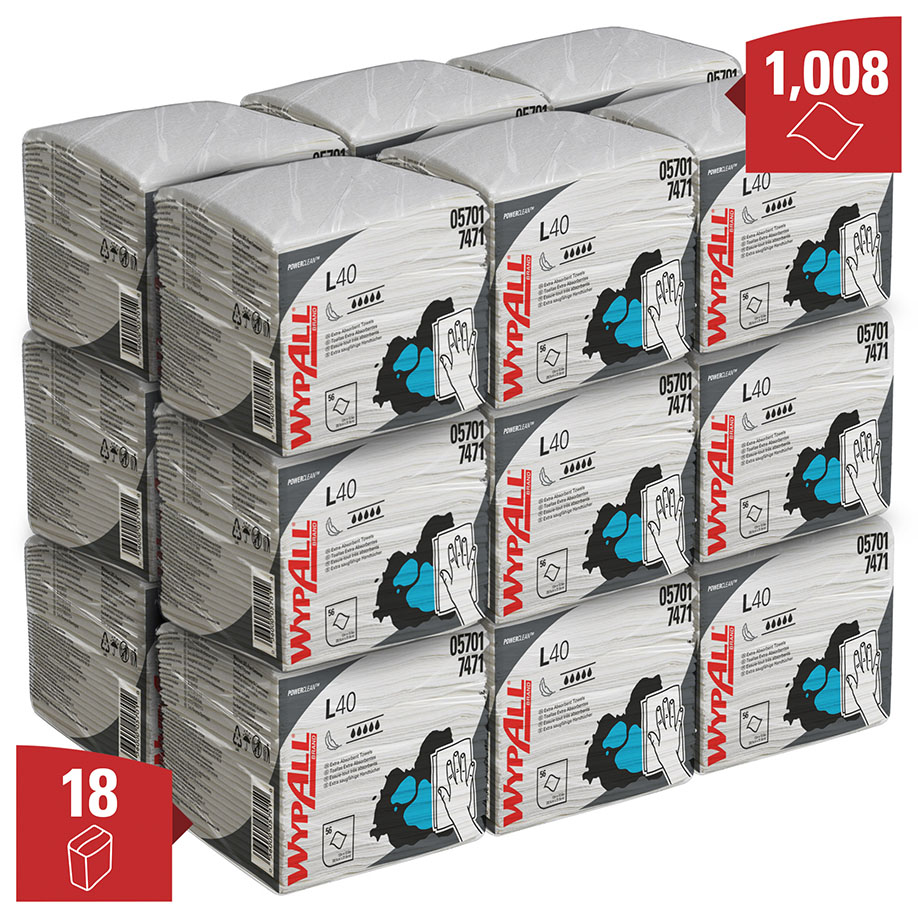 WYPALL L40 wipers, 1-ply, white, 30.4 x 31.7 cm (18 x 56 sheets) pal. = 15 cases