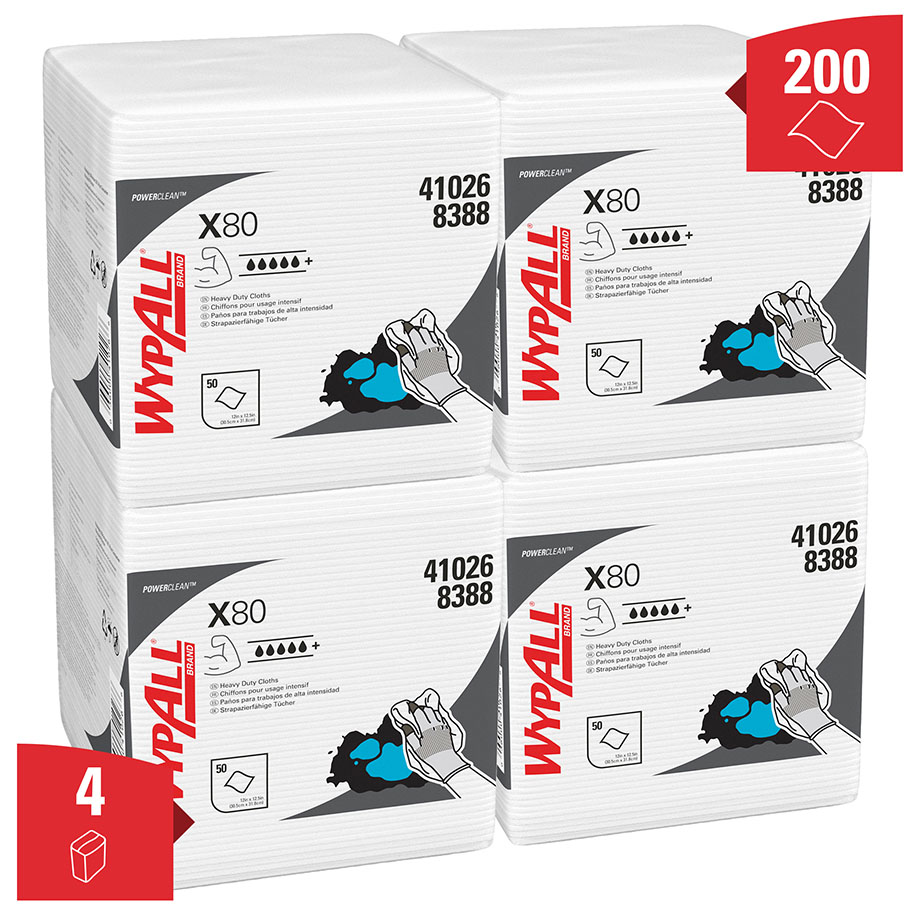 WYPALL X80 wipes, 1-ply, white, 31 x 32 cm (4 x 50 sheets) pal. = 90 cases