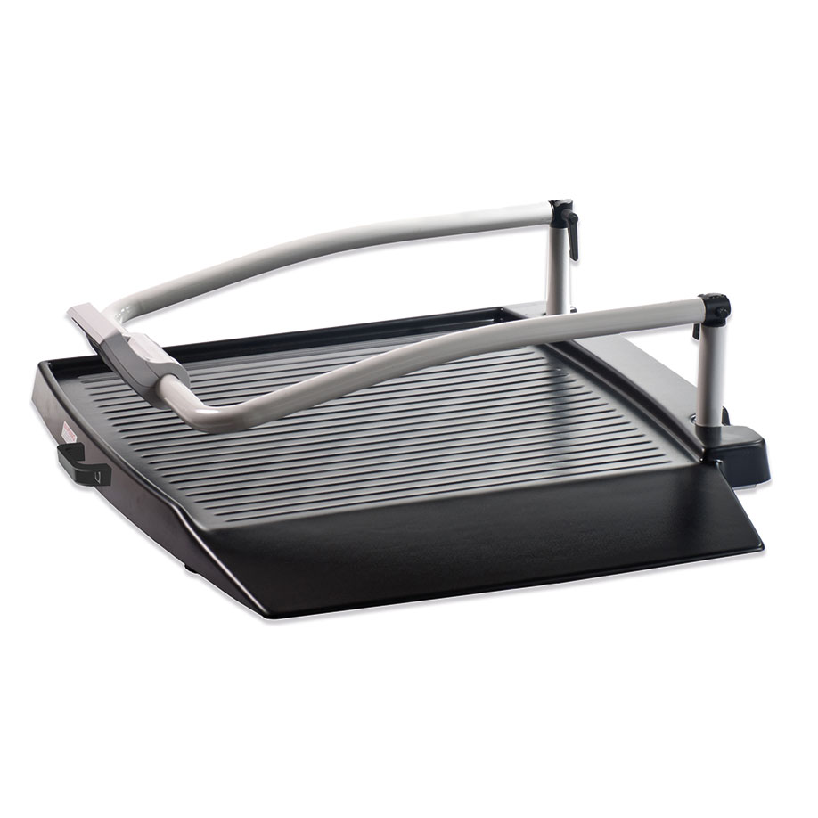 - Includes foldable handrails, painted white