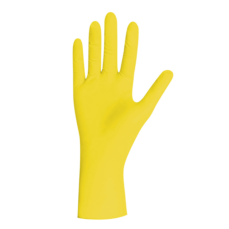 The Unigloves YELLOW PEARL® nitrile gloves with roughened fingertips ensure an optimal grip during use, and the universal fit allows for ambidextrous use. The waterproof material not only protects against moisture, but also against viruses, fungi and bacteria. The disposable gloves are used in gastronomy and industry, hospitals and medical practices as well as beauty and hair salons. The gloves have been tested in line with PPE Regulation (EU) 2016/425 and European standards EN 374, EN 420 and EN 455.