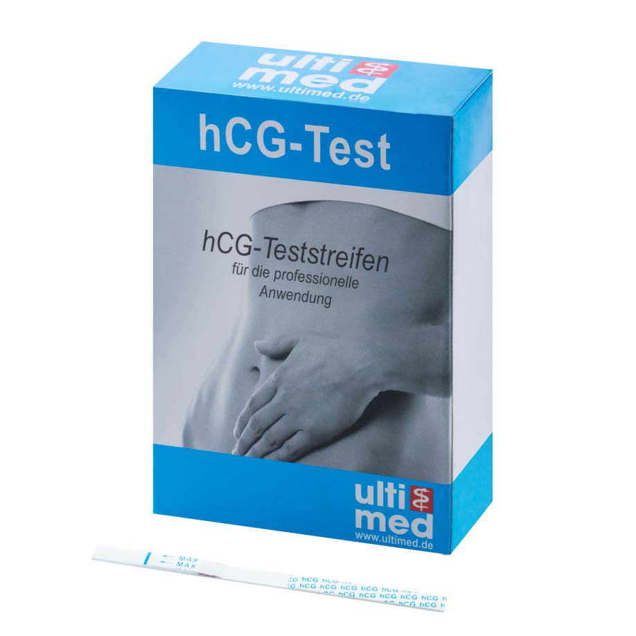 The hCG dip stick pregnancy test is a chromatographic immunoassay for the qualitative detection of human Chorionic Gonadotropin (hCG) in urine (at a sensitivity of 25 mIU/ml).