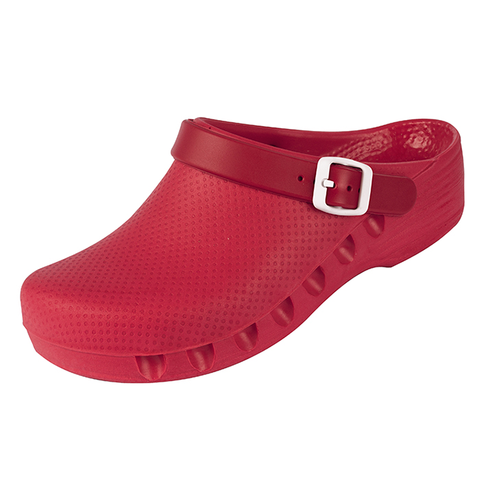 The heel lift and the orthopaedic footbed ensure fatigue-free walking and standing. This will relieve the musculoskeletal system at the operating table. The adjustable heelstrap keeps the foot securely in the shoe.The product is made of anti-static PU and is machine washable up to 60°C. It is foamed without CFC.