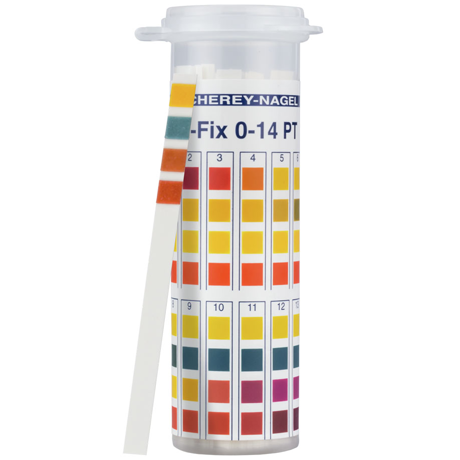 pH-Fix are high-quality, non-bleeding indicator sticks. The pH-Fix test strips are chemically bound to the test pads. This patented technology prevents bleeding of the dyes and therefore a contamination of the sample, even in highly alkaline solutions. The fixation enables the strips to remain in solution over extended periods of time allowing a safe pH determination even in weakly buffered solutions.